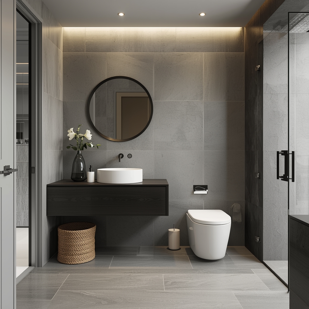 استفاده از رنگ طوسی مات در سرویس بهداشتی، فضایی آرام و تمیز میسازد. سرامیک آریکس بهدلیل مقاومت بالا در برابر رطوبت، گزینهای مناسب برای کف و دیوار سرویسهای بهداشتی مدرن است.
